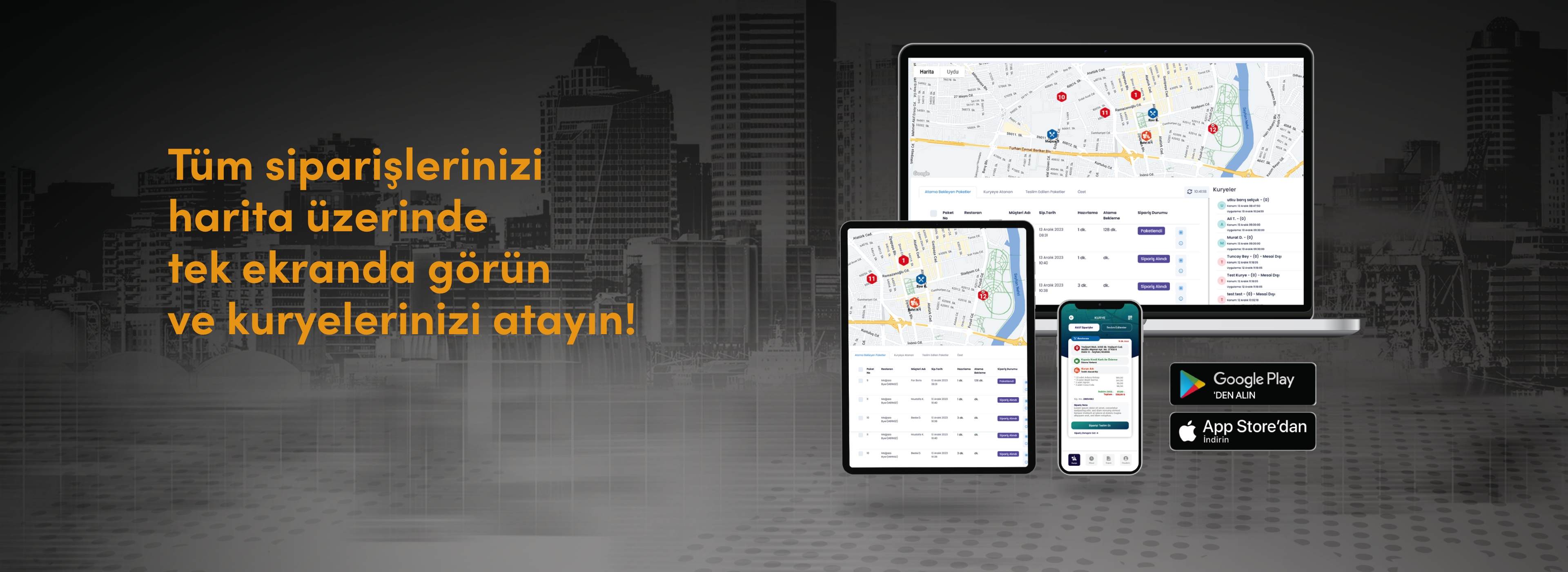 Hizmet ağımız geniş bir lokasyonu kapsayarak, restoranınızın her bölgeye kolayca ulaşmasını sağlar. Böylece daha fazla müşteriye hızlı ve etkili şekilde ulaşabilirsiniz. Aynı zamanda, teslimat operasyonlarınızı büyütürken lojistik süreçlerinizi kolaylaştırabilirsiniz.